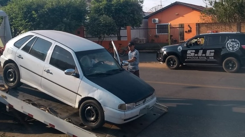 Os investigadores realizaram a abordagem e um dos suspeitos, de 20 anos, alegou ter ido ao local apenas para ajudar os amigos com o conserto de um veículo. Ele estava acompanhado dos outros dois autores, de 21 e 26 anos. O suposto carro com problemas seria um VW Gol, de cor branca, que estava estacionado na rua. Durante investigações, descobriu-se que um veículo Celta seria utilizado para rebocar o Gol.