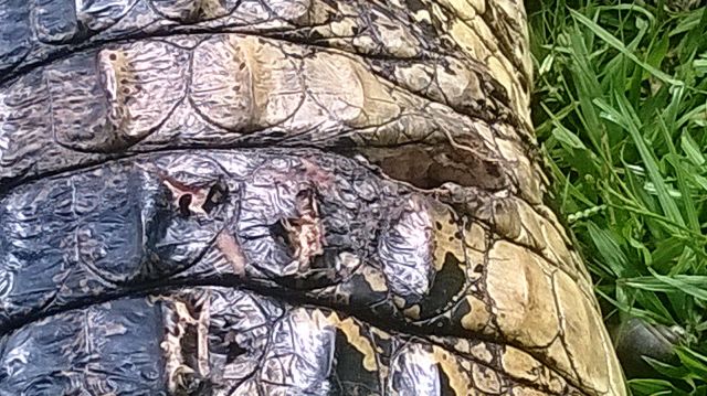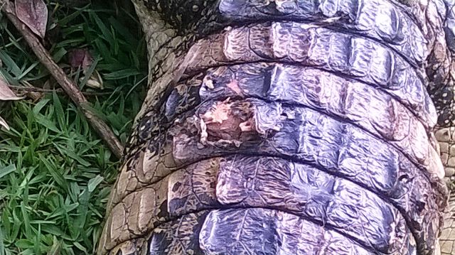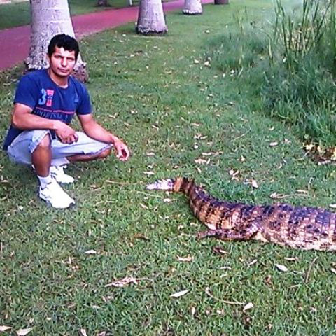 Segundo ele, uma pessoa inda não identificada tentou matar nesta semana – com um arpão – o jacaré do papo amarelo que habita o espaço natural.