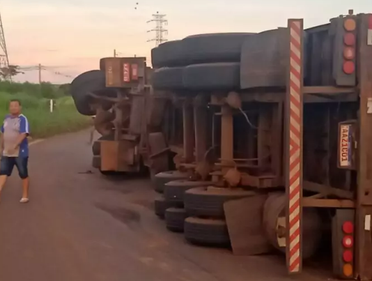 Uma carreta carregada com porcos tombou no fim da tarde desta segunda (30), na BR 262, próxima à saída do Jupiá e na divisa entre Três Lagoas e Castilho (SP).