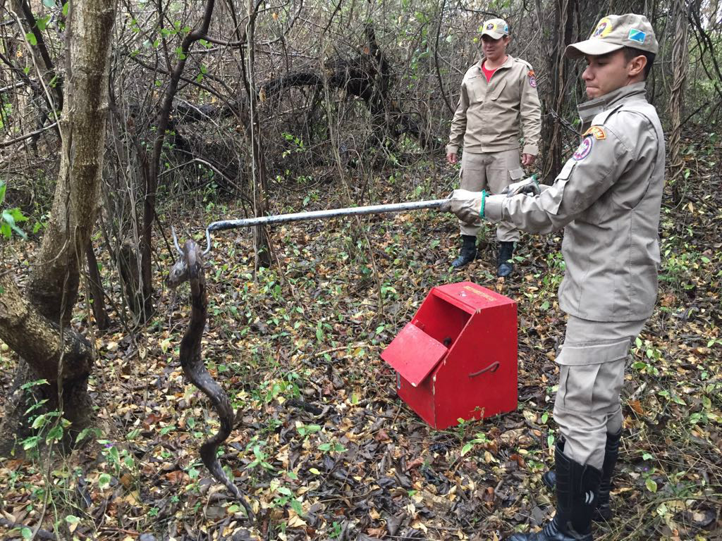 De acordo com os militares, depois de capturada, serpente foi solta em área de mata nativa, distante na região urbana.