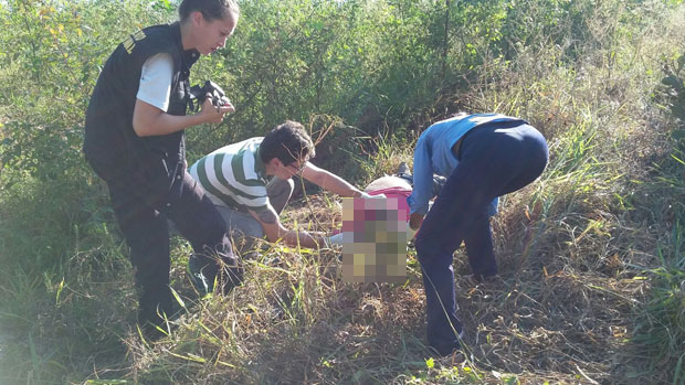 Pelo local, aproximadamente mil metros da rodovia, os PMs encontraram João Paulo Nogueira de Lima de 19 anos. A vítima estava trajando camiseta cor de rosa, calça jeans azul e meias de cor cinza. A PM informou a polícia civil do fato, e esta enviou no local uma equipe de Pericia Papiloscopista.