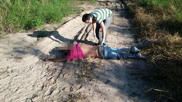 Depois de periciado o local foi encontrado uma munição CBC calibre 32 e verificado que o cidadão possui uma tatuagem com escritas na região do dorso (Eunice Minha Eterna Rainha) e que também tinha perfuração na cabeça.