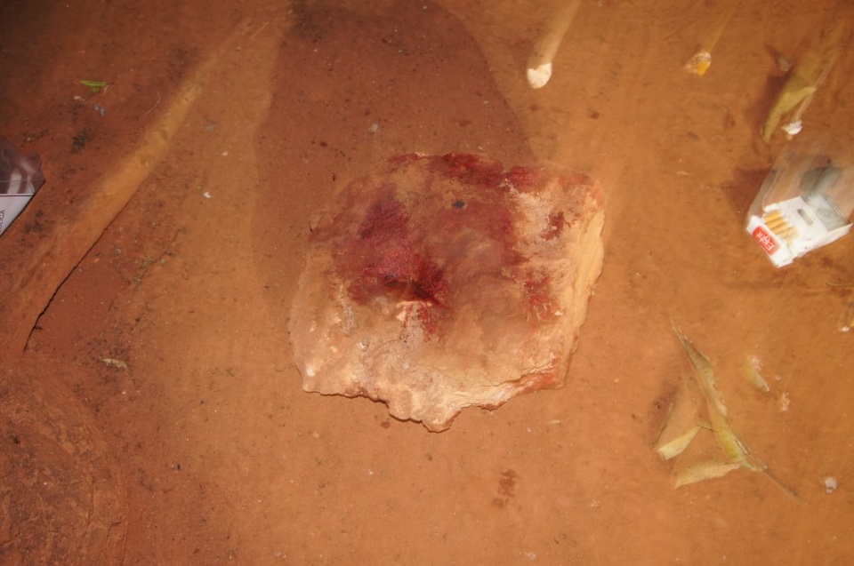 A polícia encontrou ao lado do corpo uma pedra grande, coberta de sangue, e um ferro de passar roupas quebrado, também coberto de sangue. Estas seriam as possíveis armas do crime.
