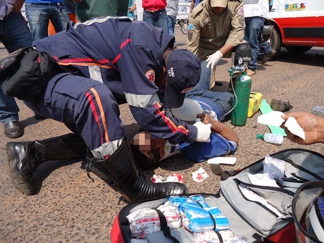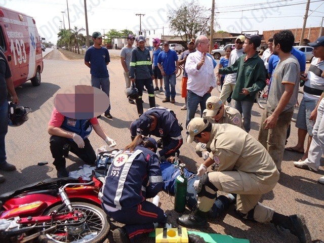 Um grave acidente entre uma moto e uma camionete é atendido neste momento (11h20min) desta quinta-feira (28) em um dos cruzamentos mais perigosos de Três Lagoas, no cruzamento das Avenidas Ranulpho Marques Leal (BR262) e Rosário Congro no Jardim Alvorada.
