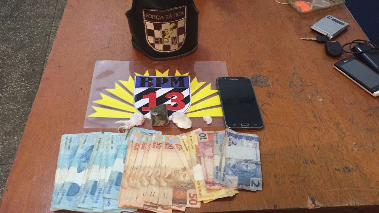 O rapaz foi preso em flagrante por tráfico de drogas e a substância apreendida, sendo ambos encaminhados para a Delegacia de Polícia Civil.