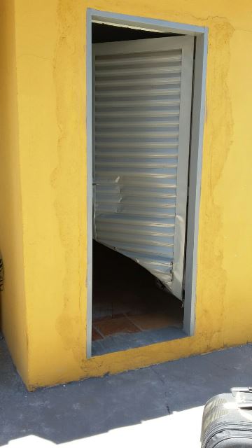 Os soldados realizaram vistoria na cena do crime e constatou que para ter acesso ao interior da residência, os bandidos arrombaram uma porta de metal, a deixando retorcida.
