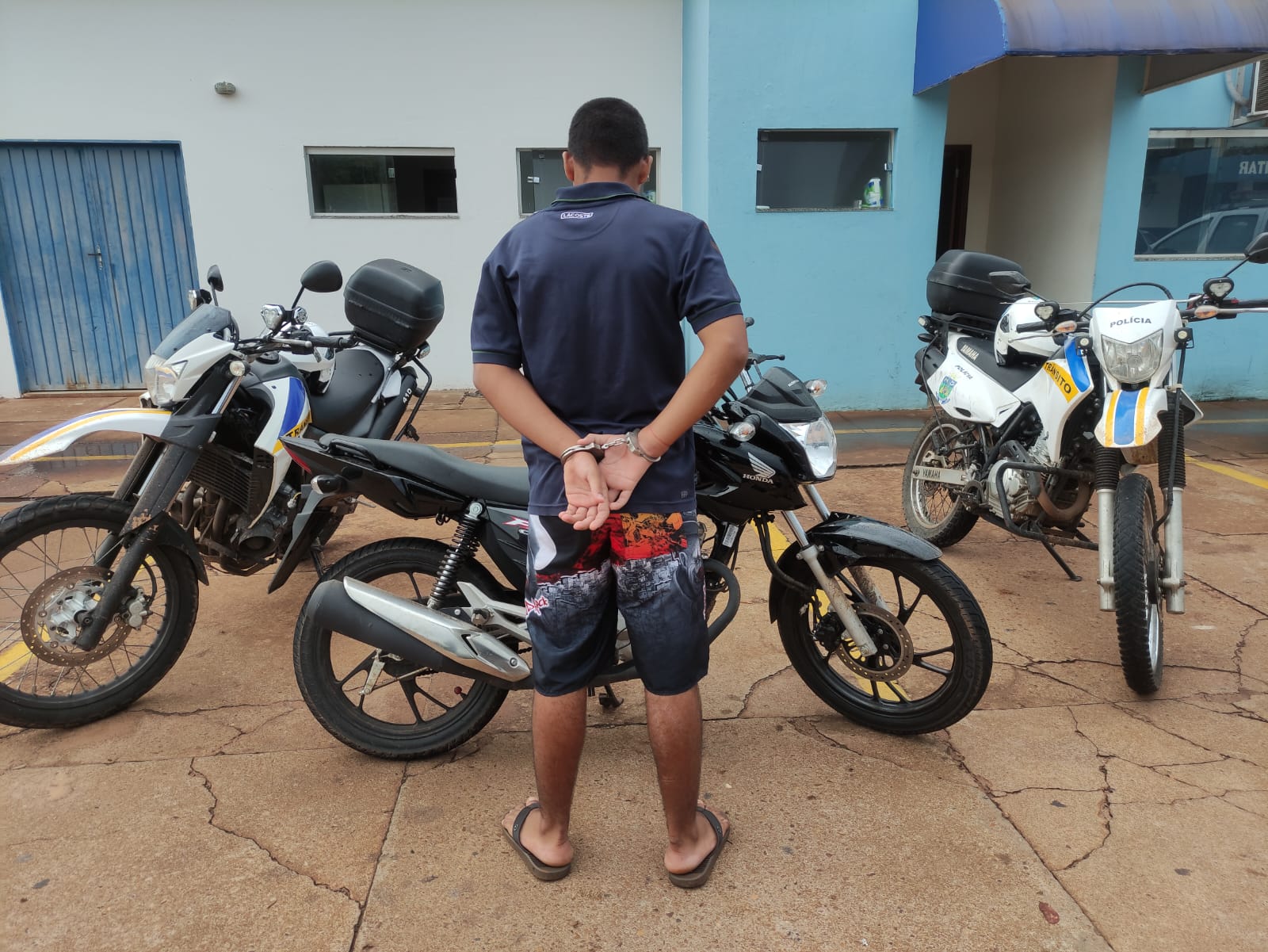 Com a numeração do chassi, os policiais confirmaram que se tratava de um produto de roubo. Já o suspeito tentou fugir pelos blocos do condomínio, sendo localizado. Questionado sobre, disse que não era o autor do crime, e que só ficou com o veículo.