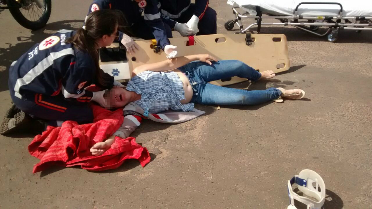 Jovem motociclista fica ferida após se envolver em acidente em Três Lagoas