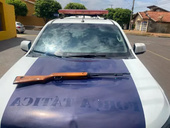 De acordo com a PM, com o rapaz foram encontradas duas munições intactas de calibre .22. Questionado, ele teria informado que a espingarda estaria guardada na casa do pai, que autorizou a entrada da equipe policial. No imóvel, a arma foi localizada com um cartucho já deflagrado.