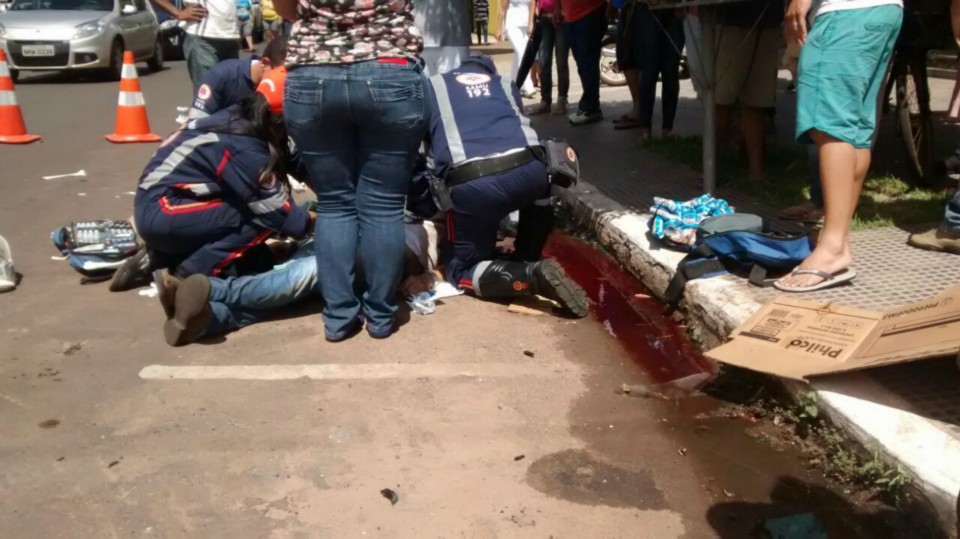 O Serviço de Atendimento Móvel de Urgência (SAMU) foi solicitado a comparecer neste sábado (14) na esquina das ruas João Silva com a rua Orestes Prata Tibery, área central de Três Lagoas (MS), onde um jovem identificado como Rodrigo Brito (29) ficou gravemente ferido em um acidente de trânsito com a sua motocicleta Honda Biz e um veiculo VW Fox.