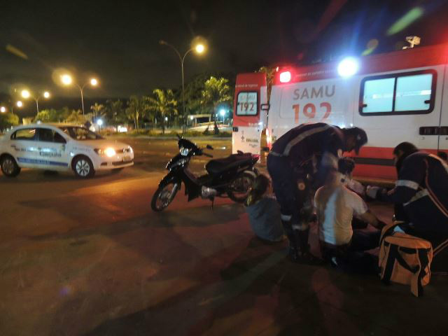 O homem, aparentando 25 anos, bateu o rosto no asfalto, ocasionando intenso sangramento na região do nariz, mas foi socorrido consciente e orientado. A passageira da moto, uma jovem de aproximadamente 22 anos, reclamava de muita dor no joelho direito.