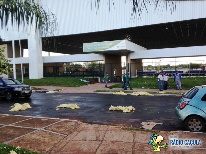Tudo se repetiu, dessa vez na tarde dessa sexta-feira (14) um novo vendaval de proporções bem menores que o da semana anterior, deixou a região da Lagoa Maior novamente suja e infestada de lã de vidro, material usado na cobertura do Centro Poliesportivo Eduardo Milanez de Três Lagoas.