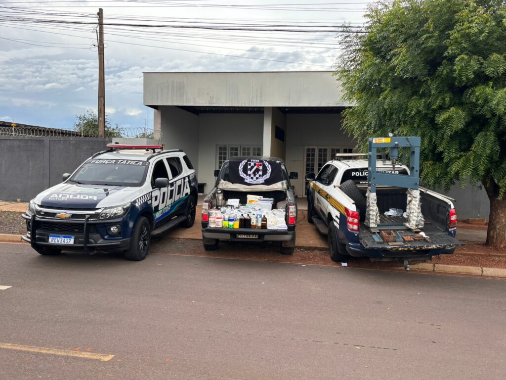 Dentro da casa, os policiais se depararam com uma verdadeira estrutura de produção e preparo de cocaína. Foram encontrados mais de 40 kg do entorpecente, divididos entre porções prontas para venda, pacotes a vácuo e material em forma granulada. Também havia grande quantidade de equipamentos utilizados no processamento da droga, incluindo balanças de precisão, liquidificador industrial, peneiras, prensa hidráulica de 30 toneladas, embalagens para selagem a vácuo, frascos com substâncias químicas, como soda cáustica e líquidos com forte odor de éter, além de máscaras, luvas e utensílios diversos usados na manipulação do produto.