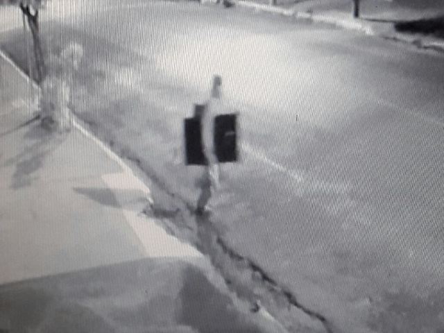 O criminoso saiu do local com dois televisores, carregados um em cada braço, em sentido bairro Colinos.