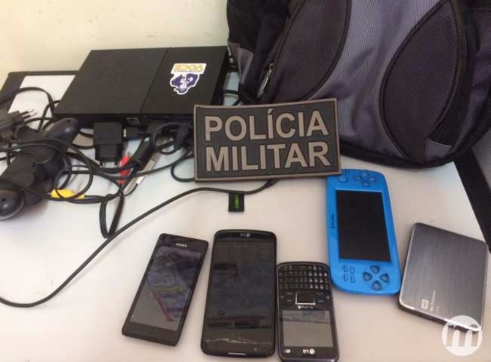 Com Celso a PM encontrou uma mochila com produtos furtados no bairro, sendo eles dois notebooks, um vídeo game, seis pen drives, três celulares e um HD externo.