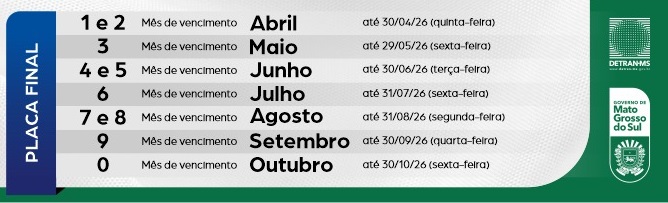 O pagamento do licenciamento de veículos 2026 já começou em Mato Grosso do Sul, conforme calendário divulgado pelo Detran-MS. Neste mês de abril, devem regularizar a situação os proprietários de veículos com placas de final 1 e 2.
