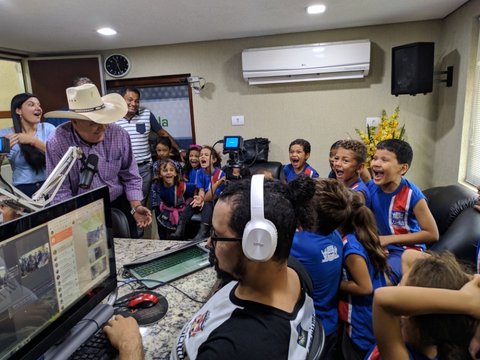 Aproximadamente 28 crianças estarão participando do programa com o Romeu de Campos Jr. para conhecer sobre as profissões do rádio e da TV.