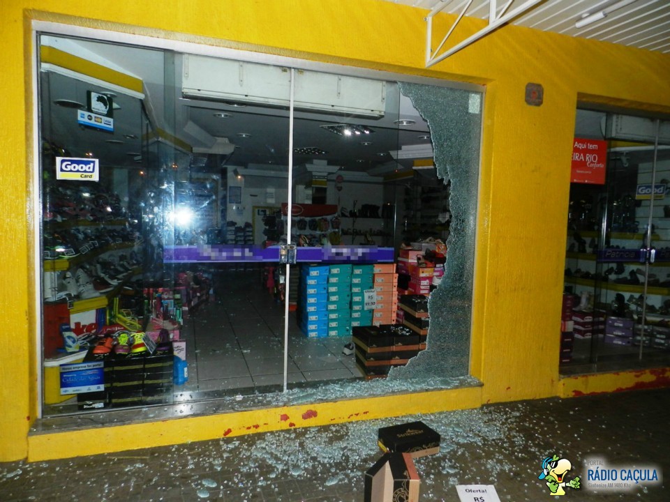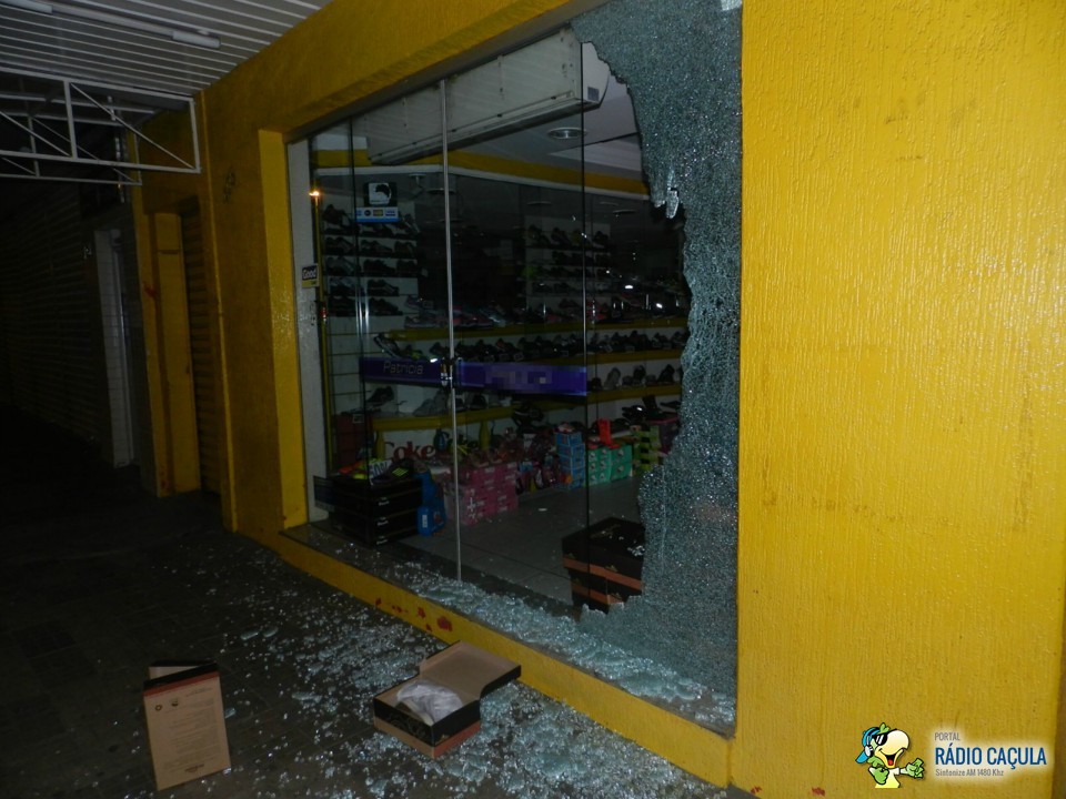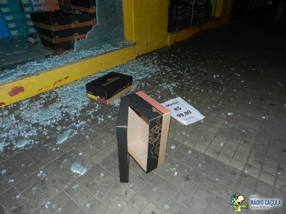 Segundo informações da dona da loja cinco menores em bicicletas e todos encapuzados quebraram o vidro do estabelecimento com uma pedra furtando cinco sacos de calçados se evadindo do local tomando rumo ignorado.