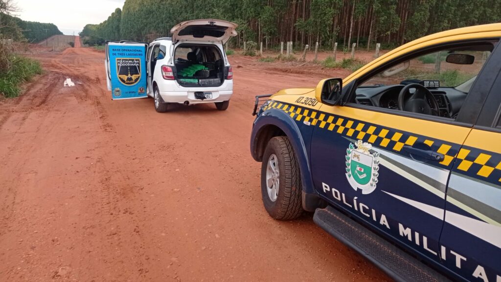 Em acompanhamento tático, o motorista do veículo abandonou o automóvel às margens da rodovia, fugindo a pé e entrando numa plantação de eucalipto. No interior do veículo foi encontrado 70,6kg de maconha em 101 tabletes, sendo levado para a Polícia Civil do município de Brasilândia (MS).