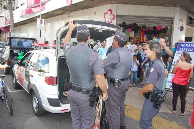 A Polícia Militar foi acionada por funcionárias de uma das lojas que desconfiaram da ação das mulheres. Os PMs localizaram o carro usado por elas, um Gol de cor cinza, e aguardaram a chegada das mulheres, na praça Rui Barbosa, ao lado da entrada do calçadão.