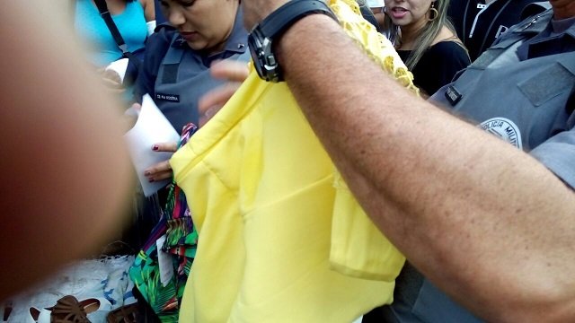 Ao chegar perto do veículo, mãe e filha foram abordadas pela PM. A prisão das acusadas atraiu dezenas de curiosos. A polícia localizou as peças furtadas e as mulheres admitiram o furto nas lojas Riachuelo, Pernambucanas, Mega Modas e Sumirê.