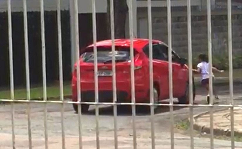 O caso aconteceu em Curitiba. A mulher deixou a filha na rua e saiu com o carro, parando em seguida para pegar a criança.