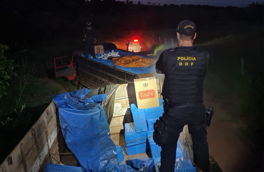 JAPORÃ (MS) – Policiais do Departamento de Operações de Fronteira (DOF) apreenderam, na madrugada de sábado (23), dois caminhões carregados com 26.100 pacotes de cigarros contrabandeados do Paraguai. A ação ocorreu em virtude da Operação Hórus, durante um patrulhamento ostensivo em uma estrada vicinal, na região de Japorã (MS).