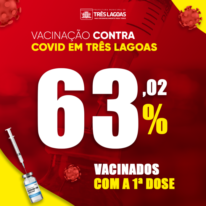 Três Lagoas avança na vacinação contra a Covid-19 e depois da campanha realizada no último final de semana, consegui atingir a marca de 63,02% da população geral do município que já recebeu a primeira dose do medicamento.