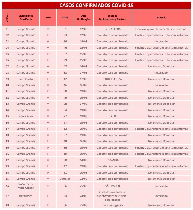 Mais duas cidades do interior de MS confirmam e casos de coronavírus sobem para 28