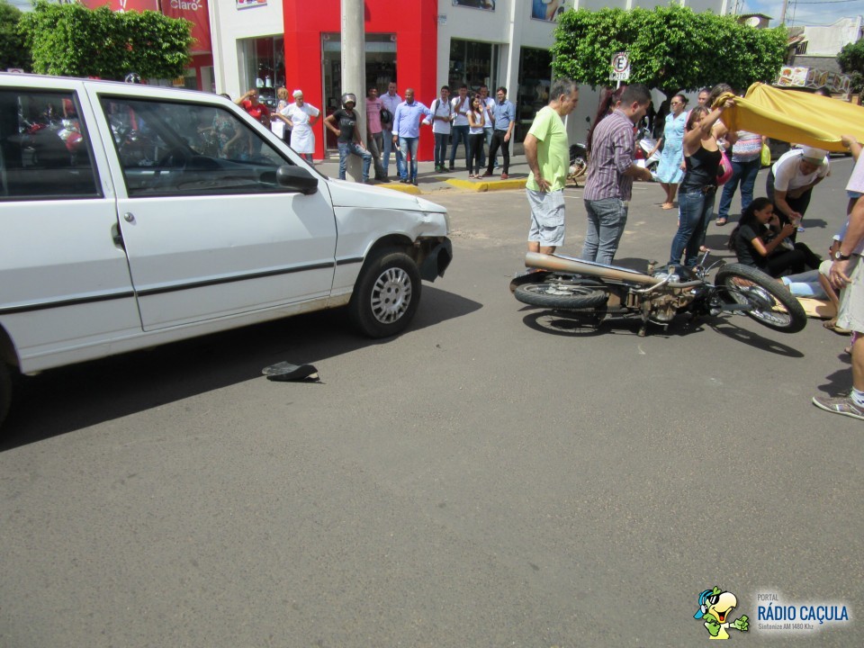 Na manhã desta terça-feira (7) um acidente foi registrado em Três Lagoas (MS) e desta vez foi na área central, no cruzamento das ruas Munir Thomé e Oscar Guimarães, envolvendo um veículo Uno de cor branca e uma motocicleta Honda CG150 de cor preta que se encontrava com dois ocupantes