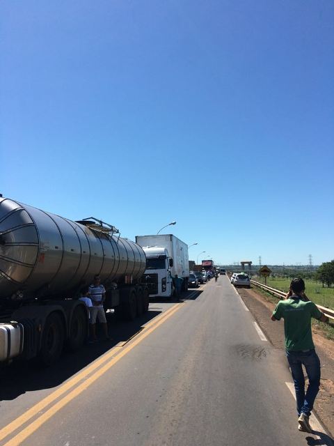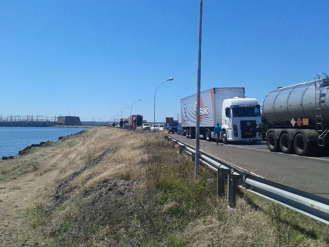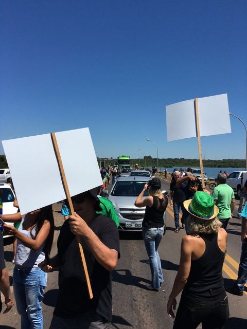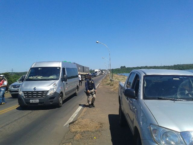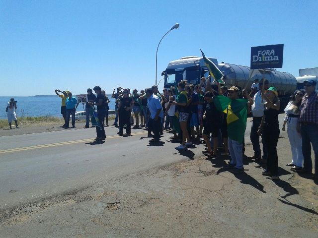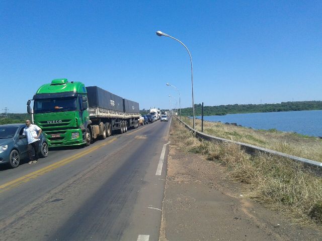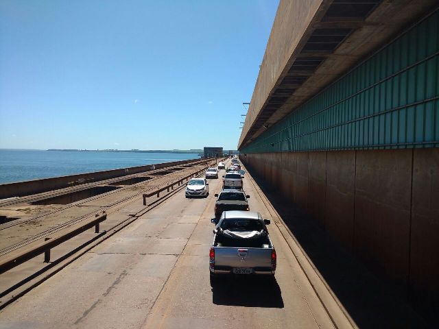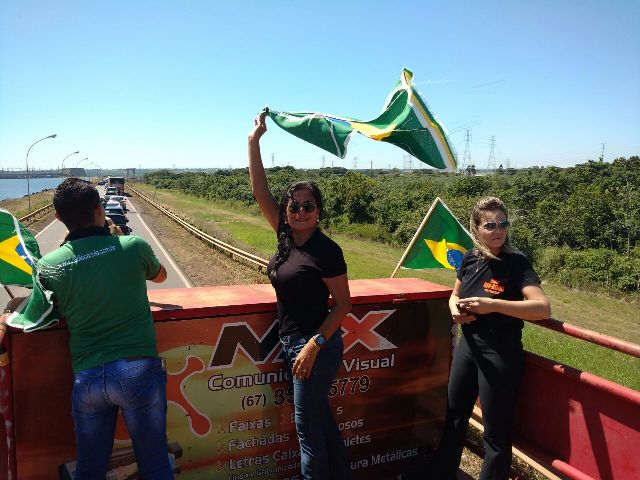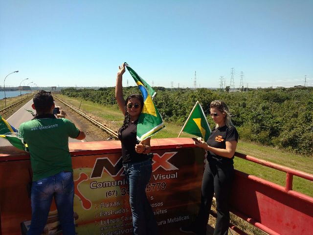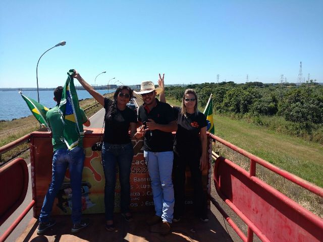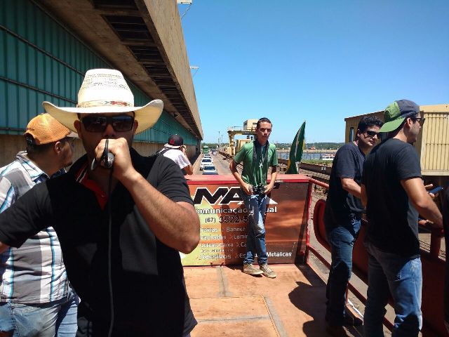 A equipe de reportagem da Rádio Caçula acompanha os manifestantes e de acordo com a organização do ato os veículos seguiram lentamente em direção ao estado de São Paulo, onde realizaram a conversão na rotatória e retornam para a ponte do Jupiá.