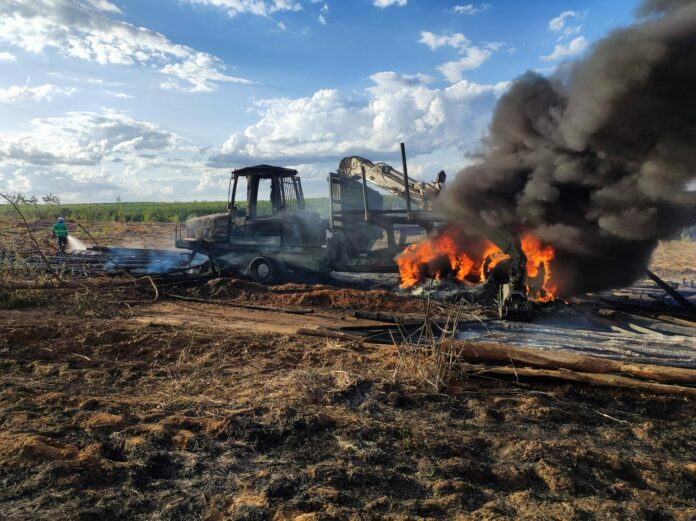No acesso de uma fazenda, uma máquina agrícola pegou fogo, que se propagou para a vegetação, não havendo vítimas. Duas equipes dos bombeiros estiveram no local, e cerca de 1200 litros de água foram usados. As causas do incêndio são desconhecidas.