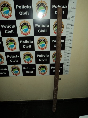 Durante a abordagem policial, o homem bastante exaltado tentou agredir a guarnição com a viga que estava em suas mãos. A polícia utilizou a força para conter os ânimos do marido exaltado.