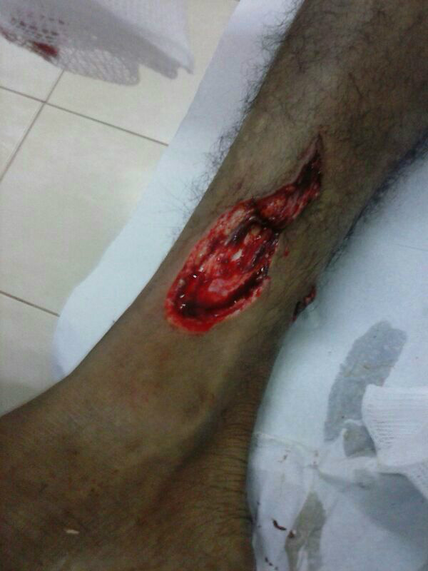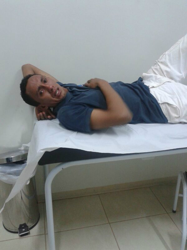 Ao chegar no local, a polícia notou que o suspeito havia fugido do estabelecimento em direção a sua residência que fica nas proximidades, na Rua José Amin. Em uma nova busca para encontrar o suspeito, a PM observou que o acusado Sérgio de Souza das Chagas de 30 anos estava com um ferimento na canela direita, tendo uma fratura exposta.