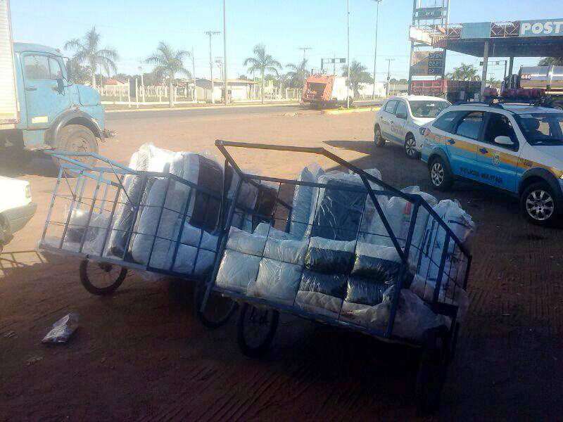 Uma nova diligência foi feita no pátio de um posto de combustível às margens da BR-262, na Avenida Ranulpho Marques Leal, no bairro Jardim Alvorada e mais uma vez, os fiscais encontraram outros dois carrinhos com cobertores e travesseiros.