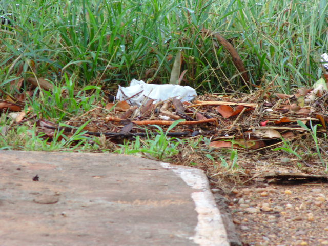 A leitora afirma que quando chove parte do lixo acumulado na via, desce parando praticamente na porta de sua residência. Dorian diz que não há escoamento para a água das chuvas no Bairro e o terreno mostrado nas fotos é de um vizinho que já foi multado.