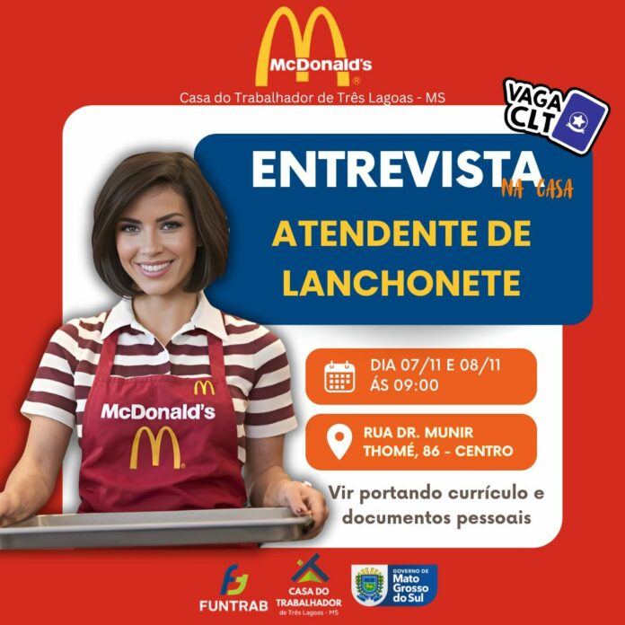 McDonald’s: nova unidade em Três Lagoas oferece 60 vagas de emprego