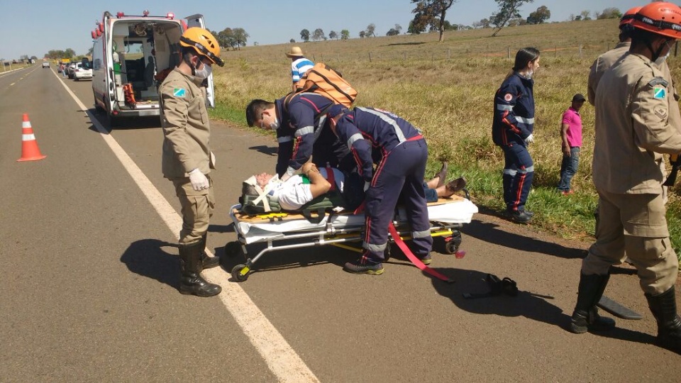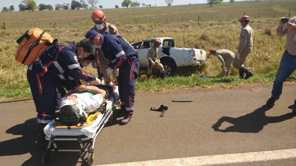 Três viaturas do Corpo de Bombeiros e uma do Samu estiveram no local fazendo os primeiros atendimentos a vitima que sofreu escoriações por todo o corpo devido ao violento capotamento, mas estava consciente e falando normalmente com os profissionais do Samu.