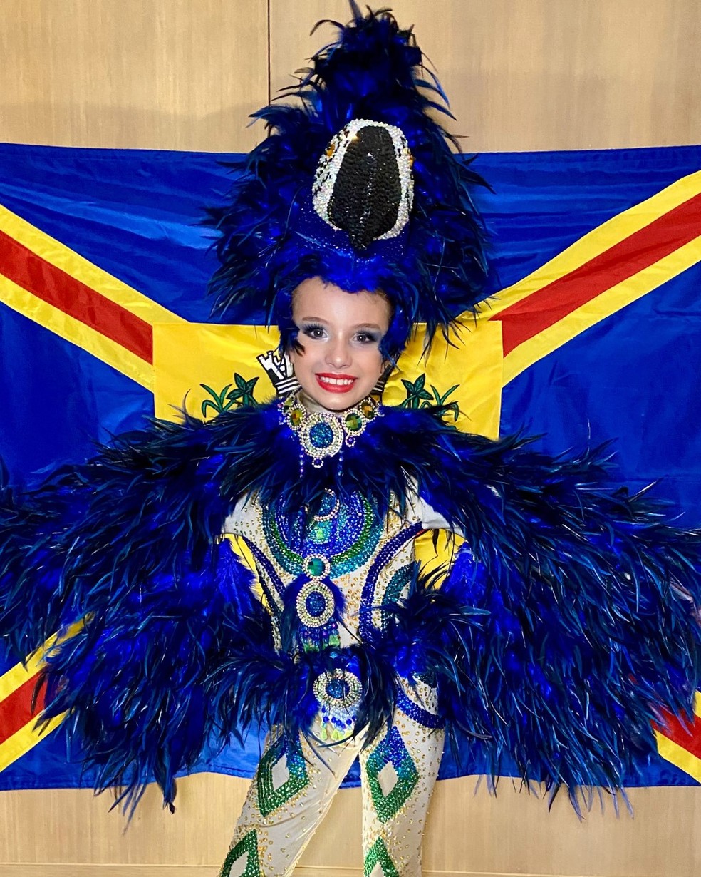 Espécie que se destaca pela beleza das penas e explosão de cores, a arara-azul corre risco de extinção e precisa de conscientização ambiental para continuar a viver nos biomas do pantanal, cerrado e a floresta amazônica. Vestida como uma delas, a estudante sul-mato-grossense Ana Carolina Leite, 8 anos, fez bonito com o traje típico em solo colombiano.