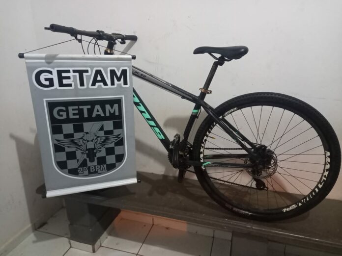 Os policiais do Grupamento Especial Tático de Motos (GETAM), durante policiamento na Vila Piloto, foi abordado um menor que estava com uma bicicleta Lotus preta e verde, onde os policiais fizeram uma checagem no quadro do veículo.