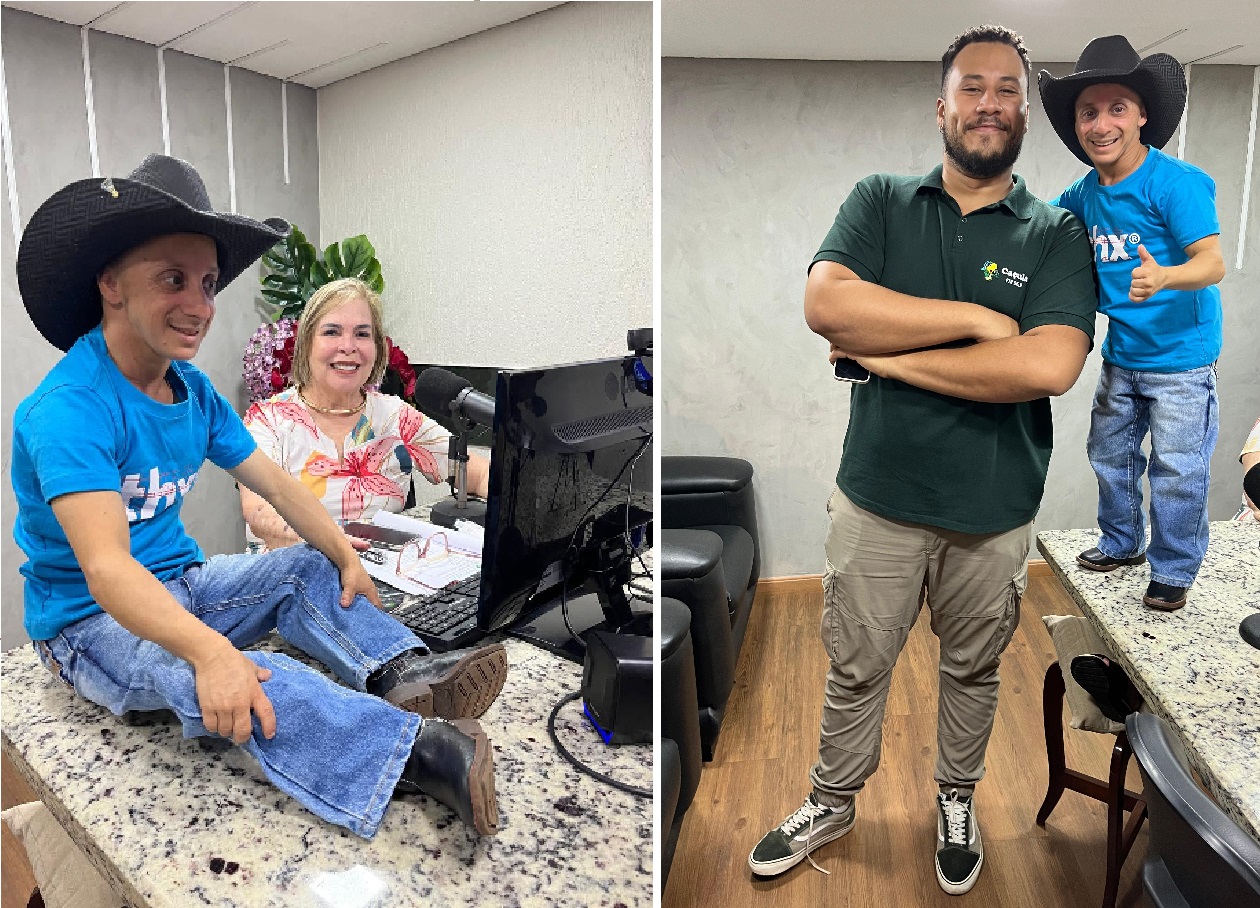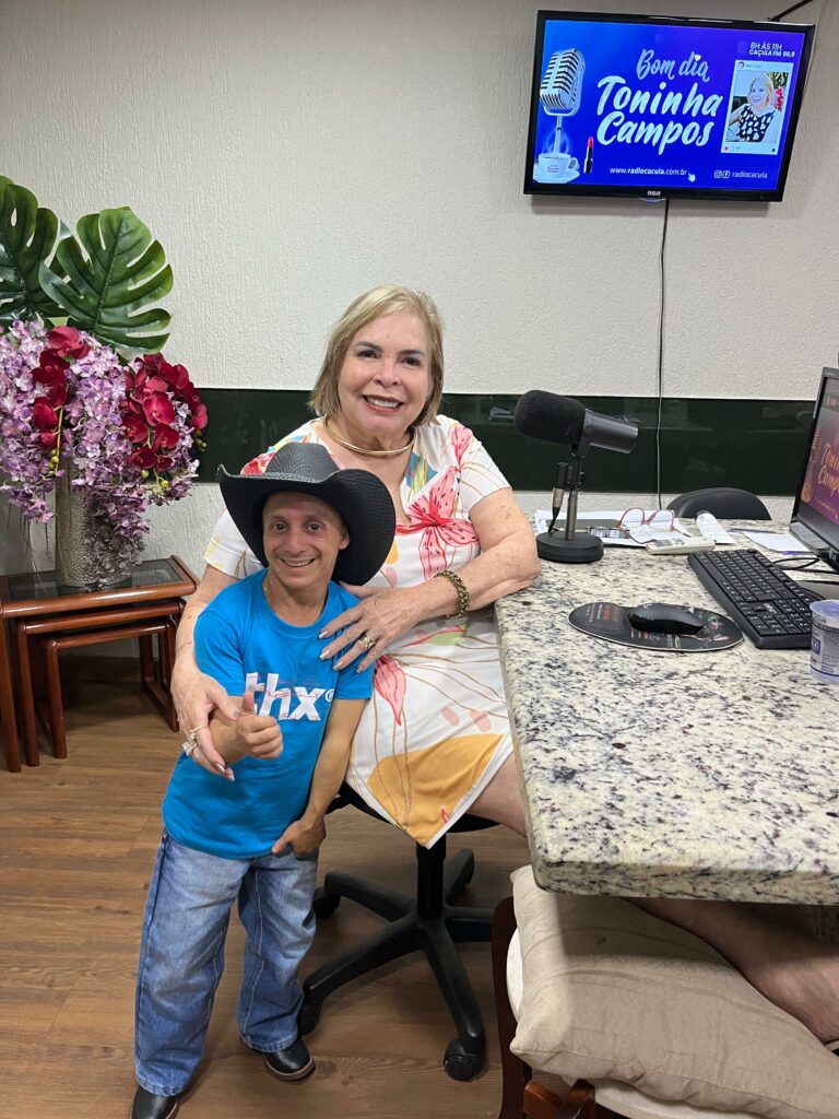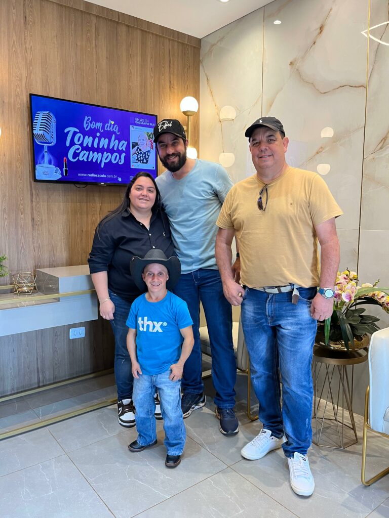 Na manhã desta terça-feira (30), a Caçula FM recebeu em seus estúdios o carismático Caíque Gonçalves Vidal, 31, conhecido nacionalmente como o menor homem do Brasil. Natural de Deodápolis (MS), onde mora e trabalha como capataz de fazenda, Caíque participou do programa Bom Dia Toninha acompanhado do prefeito Jean Gomes.