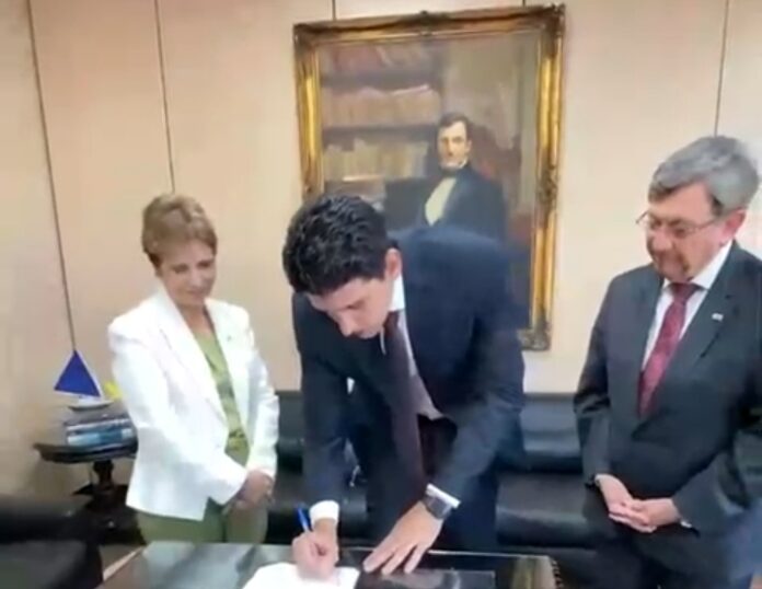 Assinatura da ordem foi feita no Ministério da Infraestrutura, em Brasília (DF), na presença do diretor nacional do DNIT e da ex-ministra da Agricultura, Tereza Cristina.