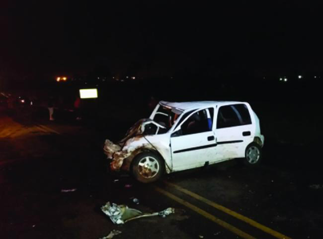 Um homem ainda não identificado foi morto a tiros na noite desta sexta-feira no minianel da BR-262 próximo ao lixão de Campo Grande. O homem caiu no meio da pista, quando um veículo picape passava no local, desviou do corpo da vítima e colidiu de frente com um Corsa que transitava no sentido leste-oeste. Próximo ao corpo do homem havia vária cápsulas deflagradas.