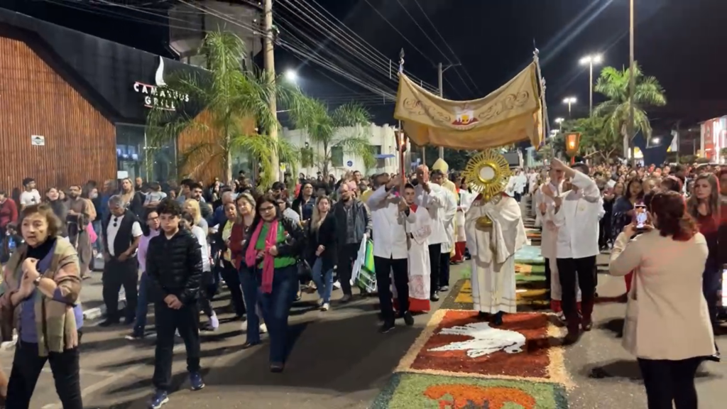 A finalização da celebração aconteceu por volta das 17h, com a realização de uma missa campal em frente à categral, celebrada pelo Bispo Diocesano de Três Lagoas, Dom Luiz Gonçalves Knupp, marcando a emoção e a tradição. Na sequência, uma procissão conduziu os fieis até a Igreja Central, onde o Santíssimo Sacramento foi levado sob o tapete decorado.