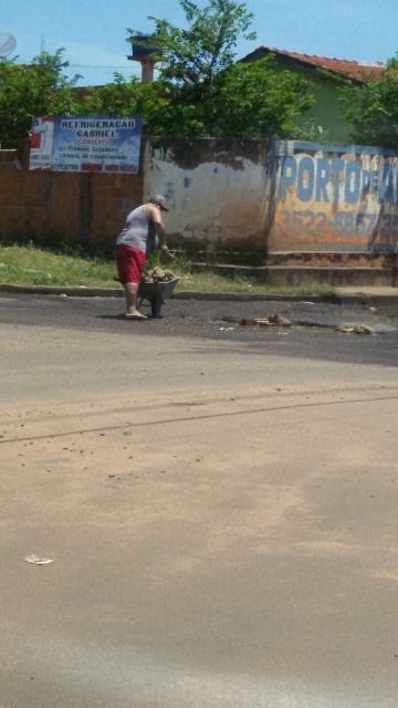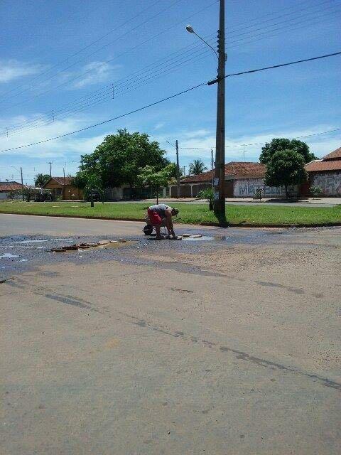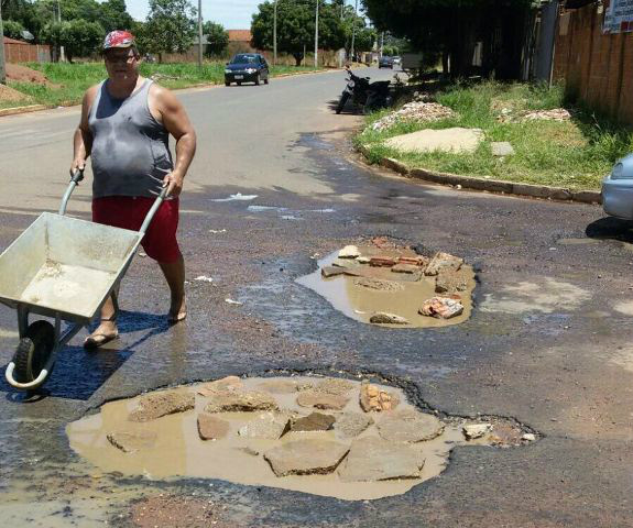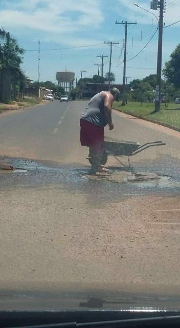 Com a cidade repleta de buracos e sem nenhuma perspectiva de que a administração pública providencie os reparos necessários em Três Lagoas, um morador do bairro Vila Haro decidiu por conta própria realizar uma operação tapa buracos na região onde vive.
