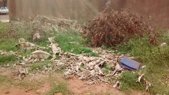 Os funcionários de um sindicato localizado na Rua José Amilcar Congro Bastos são acusados pelos moradores da região de realizar a poda em seu jardim e atirar as folhagens em via pública, formando um acumulo de lixo que serve como esconderijo para animais peçonhentos, além disso, em meio aos dejetos naturais estão recipientes plásticos, que acumulam água e se tornam locais propícios para a proliferação do mosquito Aedes Aegypti.