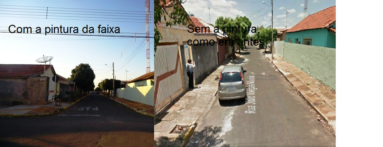 “Estamos com uma dúvida difícil e ser esclarecida. O porquê somente a nossa viela teve esta guia pintada proibindo de nós mesmos estacionarmos nossos carros na frente da própria casa.
