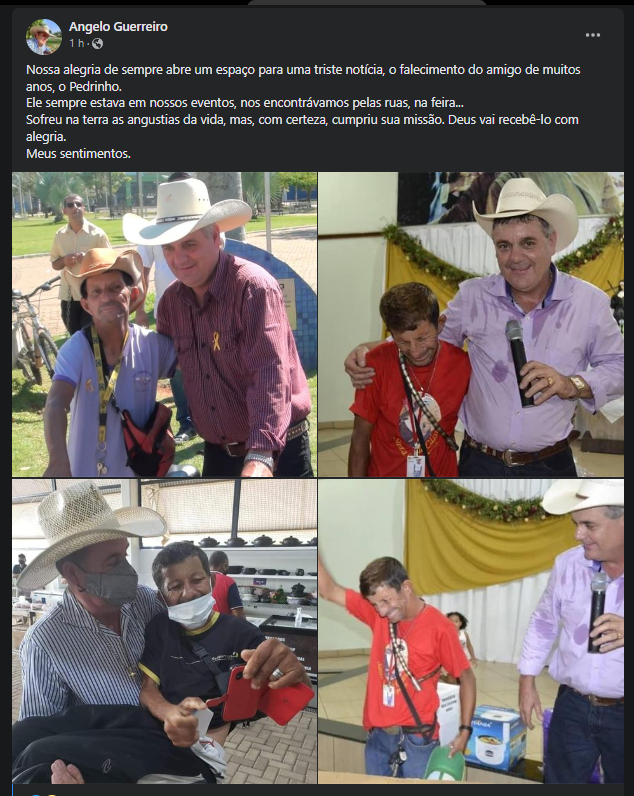Nas redes sociais, o prefeito Ângelo Guerreiro (PSDB) lamentou a morte de Pedrinho, que segundo ele, era “um amigo de muitos anos“: