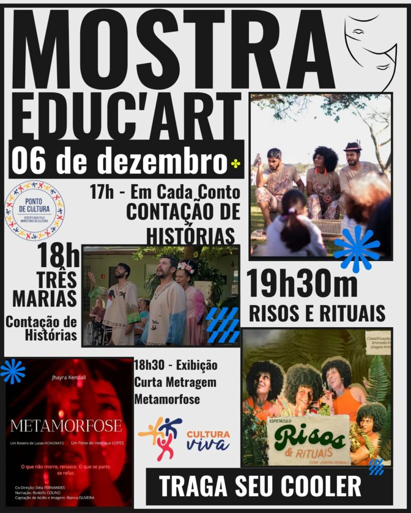 As atividades começam às 17h, com a apresentação “Em Cada Conto”, voltada à contação de histórias para todas as idades. Às 18h, o espetáculo “Três Marias” dá continuidade à programação, trazendo narrativas da cultura popular.
