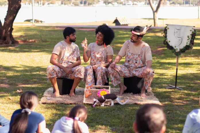 A programação começa às 17h com a apresentação “Em Cada Conto”, dedicada à contação de histórias para todas as idades. Na sequência, às 18h, entra em cena o espetáculo “Três Marias”, também voltado à narrativa oral e à valorização da cultura popular.